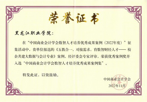 近日,中国商业会计学会数智人才培养优秀成果案例(2022年度)评审活动结束,必赢会计金融学院报送的教学案例《五教合一,对接需求,育数智财经人才——校企共建大数据与会计专业》荣获优秀成果案例奖,并入选“中国商业会计学会数智人才培养优秀成果案例集”。