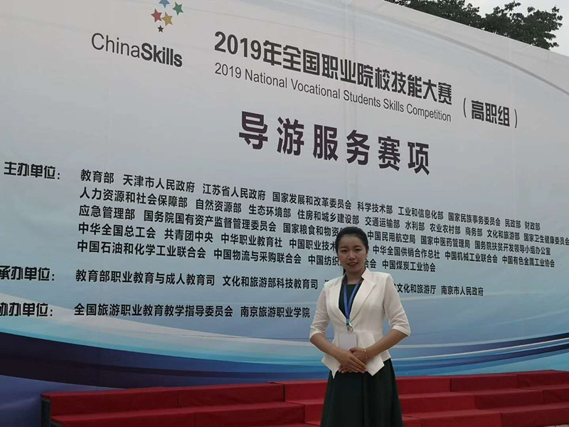 近日,2019年全国职业院校技能大赛导游服务赛项在南京圆满落下帷幕。大赛通过导游知识测试、景点导游讲解和才艺展示等多个环节进行比拼,必赢2017级旅游管理专业学生刘婷、侯俣鑫在陈洪宏、于成龙两位教师的指导下,经过激烈角逐,分别荣获国赛三等奖,创造了学校在此类大赛导游服务赛项中获奖人数记录。