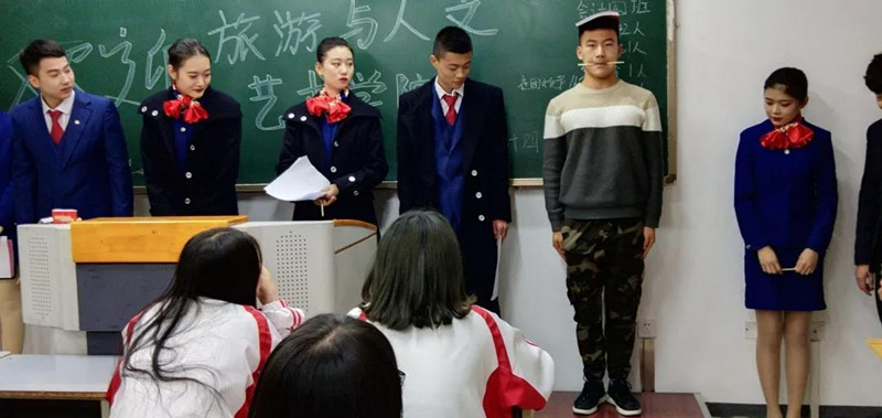 为提高学院学生晚自习学习效果和质量,促进专业之间技能相互交流学习,10月21日晚,旅游与人文艺术学院空中乘务专业学生在清华楼会计金融学院教室开展“礼仪体现细节,文明展现素质”特色晚自习活动。