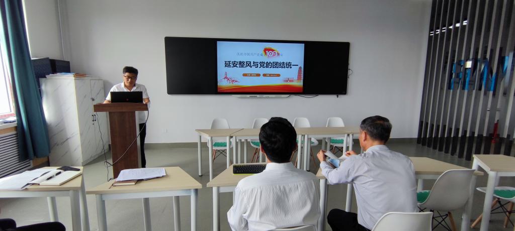 吴学军以《延安整风与党的团结统一》为题,向全体教师介绍了整风运动的意义,促进了党的团结统一,号召全体教师要团结统一,全身心积极投入到学校教学和建设中,创造辉煌的“龙职”。