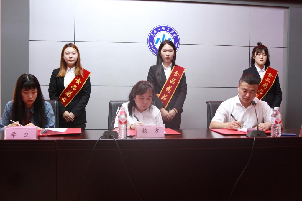2019级新生入学期间丁原春多次与企业研讨招生招工细节,并亲临新生报到现场,解答学生和家长提出的问题,与企业代表沟通交流,对后续工作开展提出建设性意见和建议。会议期间,王喆代表食品药品学院向2019级新同学的到来的表示祝贺,并向不远千里陪同而来的家长致以问候,王喆代表学院介绍了食品药品学院的总体情况与近年的发展,同时对两家长期合作企业表示感谢,并表示自2016年成立首届巴黎贝甜现代学徒制班以来连续四届成功开班,吉林大药房班已成功举办两届,现今在企业学徒学生大都成长为主任、店长,成为公司的业务骨干,感谢他们在推进校企合作和促进学院学生就业中付出的辛苦与努力,她说学生在公司的发展前景都有目共睹,也表示合作期间校企双方都付出了辛勤的努力,双方也在不断改革创新,为学徒制班深入开展不断探索。企业代表也表示食品药品学院给予了企业大量的支持,企业才能契合与学院现代学徒制合作的发展战略,学生通过在企学徒在毕业前很好地了解企业文化、深入企业实践,为实现零距离就业打下坚实基础。签约仪式随后举行,学生和家长们在大致了解企业和学校情况以后,也纷纷提出关心的问题并进行了咨询,学院参会人员和企业代表也详细回答他们的疑问,同学们都毫不犹豫地在合作协议上签下自己的名字。最后进行了开班仪式,李峰经理和田刚经理分别给2019级食品加工技术、药品经营管理专业现代学徒制班上了开学第一课,通过视频短片、多媒体展示、与学生互动等形式,条理清晰地讲解了学徒制班在校和在企学习方式,用大量实例让学生明白自身如何进行有效学习,实现自身发展。