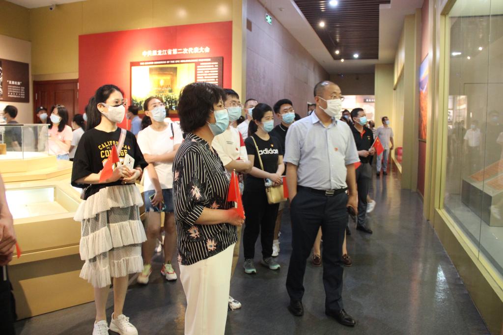 6月29日,为庆祝中国共产党成立100周年,通识教育学院党总支组织学院两个校区全体党员干部到红色教育基地——黑龙江省历史纪念馆参观学习,开展“学党史重温入党誓词”主题党日活动。