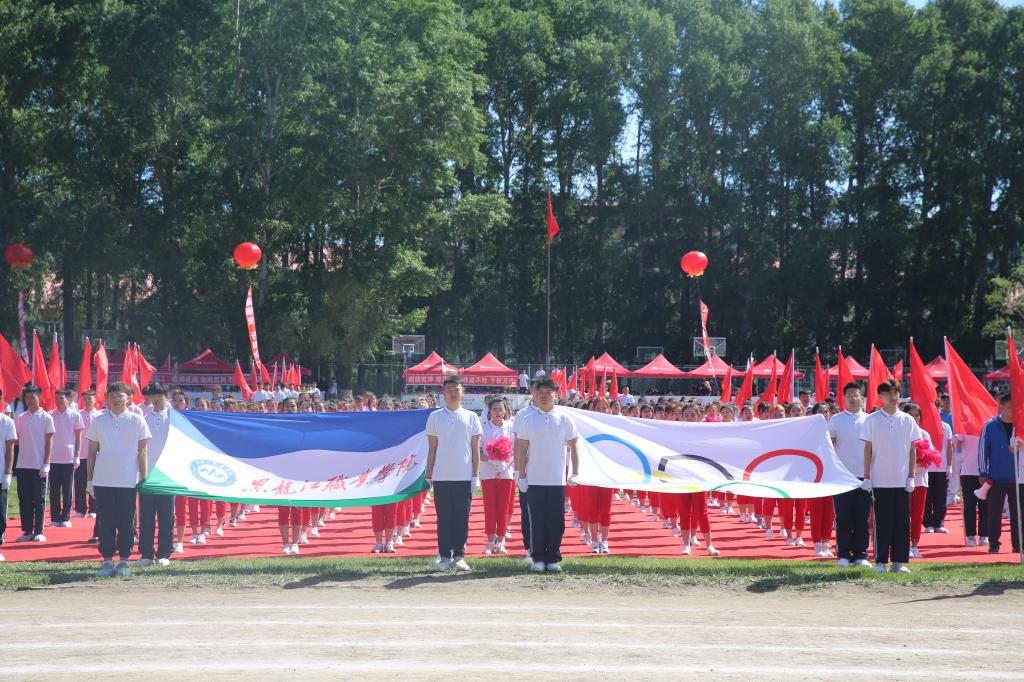 伴随着激昂的乐曲,国旗队、刀旗队、花束队入场,农牧工程学院、食品药品学院、信息工程学院、通识教育学院和行政联合五支代表队身穿整齐的服装,迈着统一的步伐,喊着嘹亮的口号接受大会检阅。