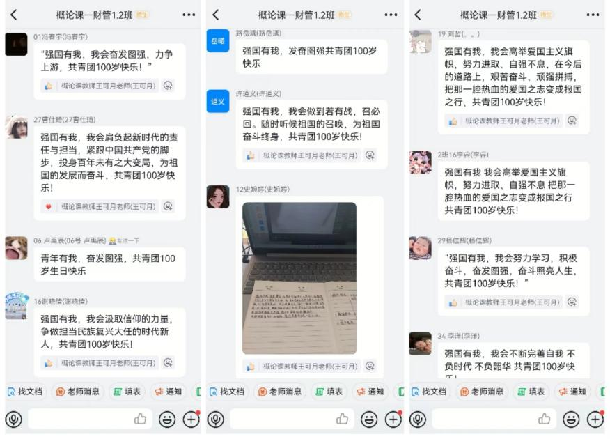 教学工作负责人徐瑛谈到:“建团百年的光辉时刻,习近平总书记对广大团员青年的殷殷嘱托,也是对我们思政课教师的激励。当代青年生逢其时,党和国家寄予了殷切的厚望,赋予重任在肩。作为思政课教师,守土有责,守土担责,守土尽责,依托思政课这个立德树人的主阵地,要做好青年学生的知心人、引路人,及时把党的理论方针政策讲明讲清讲透讲活,把党的温暖传递给学生,帮助学生立鸿鹄之志,筑信念之基,鼓励青年学生“破茧成蝶”,以青春之名,书写清澈挚爱,在实现民族复兴的赛道上奋勇争先,跑出自己最好的成绩。”