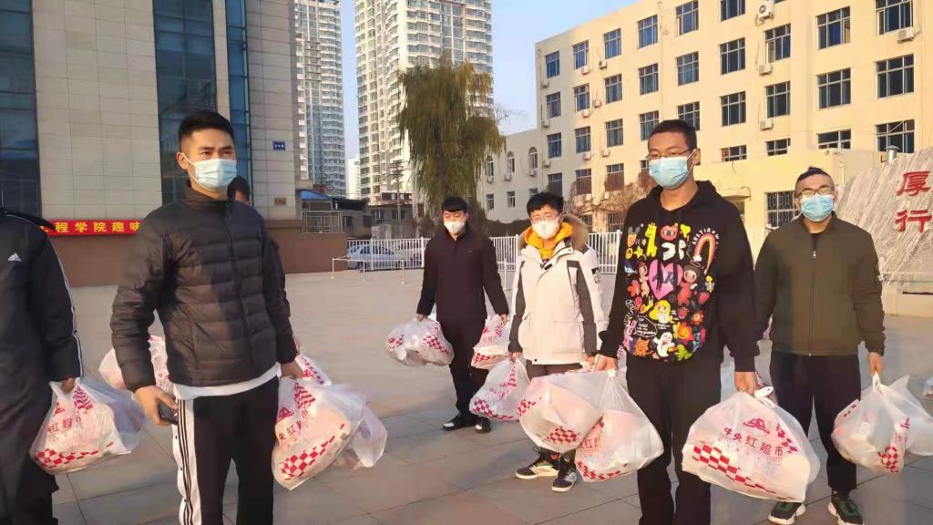 三是为隔离区学生送温暖。两校区饮食中心全力以赴为12000余名教职学员工提供满意的餐饮服务之外,又特别为校区封闭隔离区的学生专项采购了96份食品,如康师傅方便面、里道斯红肠、伊利酸奶、面包、水果等等。并告诉同学们要充满信心、耐心和韧劲儿,虽然大家在隔离,学校领导、教师和学生们心里都在惦念大家,让学生从心底感受到了学校大家庭的温暖情怀。