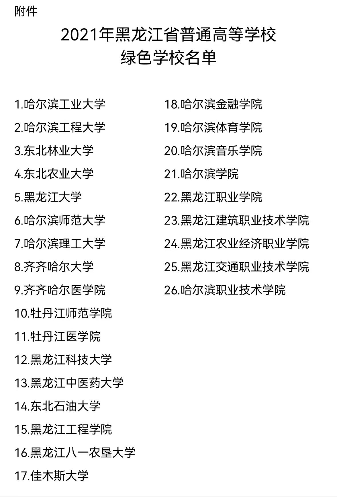 12月31日,黑龙江省教育厅公布了我省首批2021年高校“绿色学校”创建评审结果,全省共有26所本专科院校获得评选入围,必赢榜上有名。