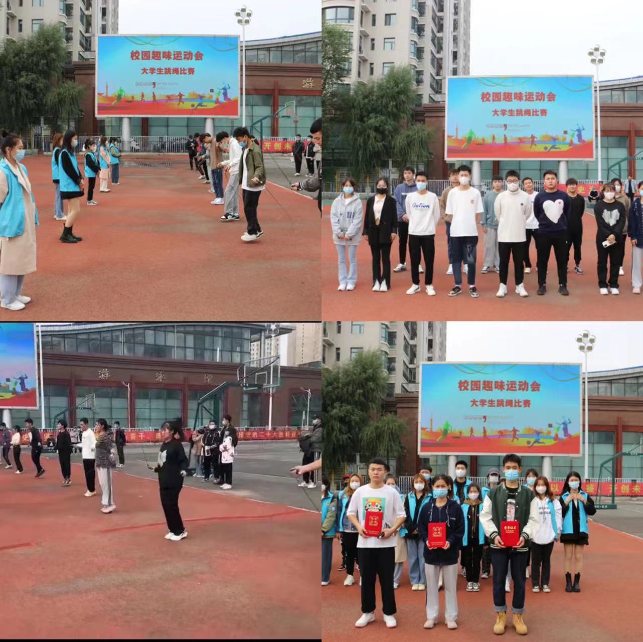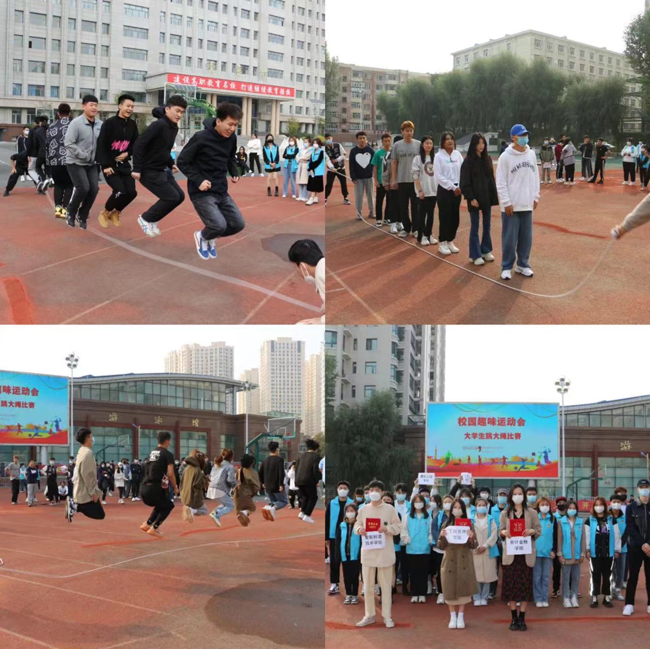 在校团工委、校学生会、校社团联合会、校学生新媒体等组织工作人员的积极倡导下,各二级学院学生积极参与,为期两天的大学生校园秋季趣味运动会初战告捷。经过激烈的角逐,最终,会计金融学院那艳阳同学获得“踢毽子”比赛个人单项第一名、汽车动力学院鲁昱博同学获得“呼啦圈”比赛个人单项第一名、会计金融学院严欣瑜同学获得“单人跳绳”比赛个人单项第一名、工商管理学院代表团获得“集体跳大绳”比赛团体第一名。赛后,校团委学生副书记关成、常雨欣分别为获奖个人和集体颁发了荣誉证书和奖状。