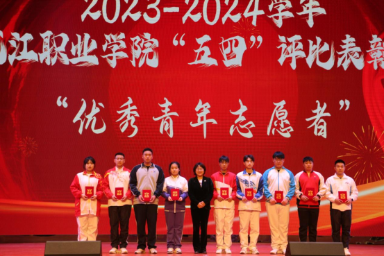 周家郁代表学校党委向受到表彰的先进集体和个人表示热烈祝贺,希望全体同学缅怀“五四”先驱崇高的爱国情怀和革命精神,激励全体同学争先创优,在今后的学习和生活中做信念坚定、理想远大、志存高远的“龙职”青年,做甘于奉献、敢于吃苦、脚踏实地的“龙职”青年,做开拓进取、勇于创新、担当有为的“龙职”青年。他希望全体同学以表彰大会为契机,坚定不移听党话跟党走,怀抱梦想脚踏实地,怀揣着自强有为、兴业报国的“龙职”精神,为“打造支撑振兴的龙头高职”贡献青春力量。