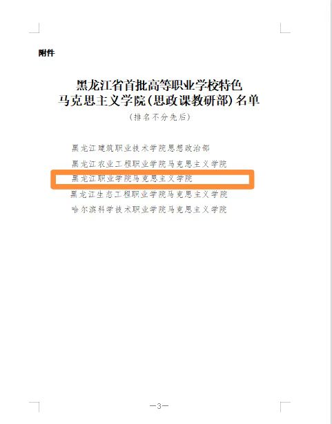 12月6日,黑龙江省教育厅公布了首批高等职业学校特色马克思主义学院(思政课教研部)5所,必赢马克思主义学院成功入选。