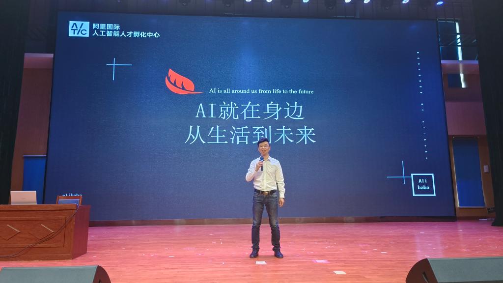 本次讲坛邀请阿里国际人工智能人才孵化中心认证讲师王华磊担任主讲,王老师以风趣幽默、通俗易懂的语言,讲解了AI基础及应用、AI挑战与责任、未来展望与行动等内容。同学们深入思考、积极互动、热烈讨论,纷纷表示对AI技术应用有了更清晰的认知,在学习和生活中不断探索实践。