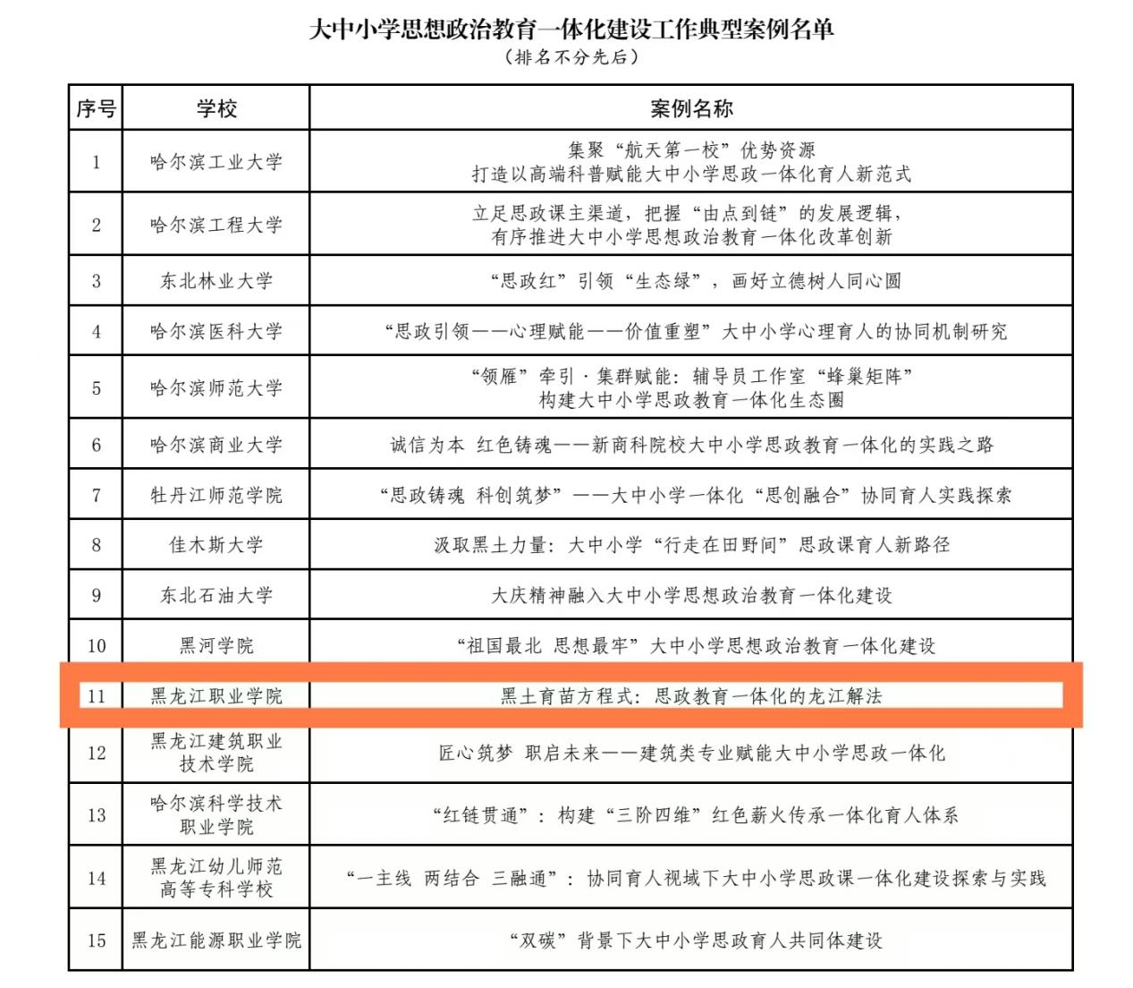 近日,黑龙江省教育厅公布“黑土铸魂”高校思想政治工作质量提升综合改革与精品建设项目遴选结果,马克思主义学院徐瑛教授撰写的《黑土育苗方程式:思政教育一体化的龙江解法》入选全省大中小学思想政治教育一体化建设工作典型案例。