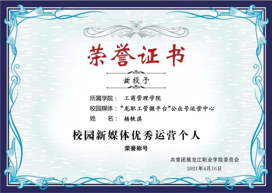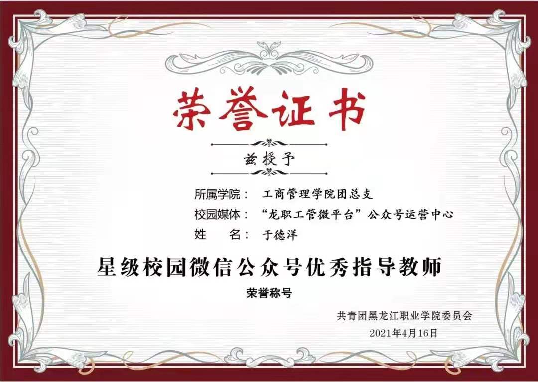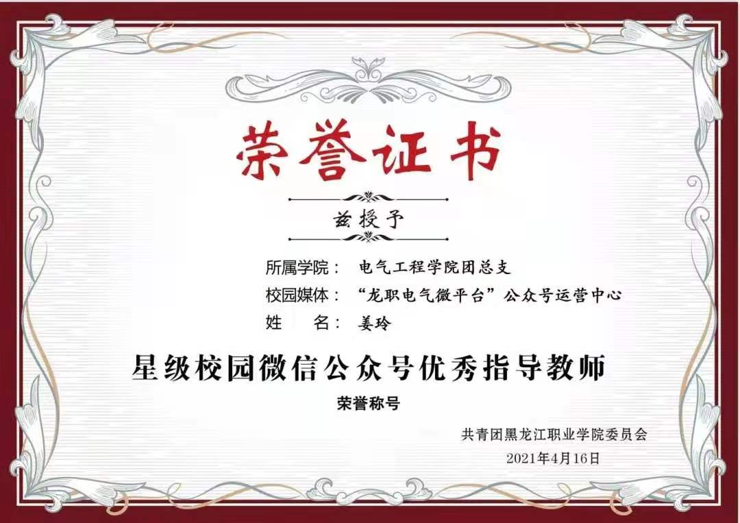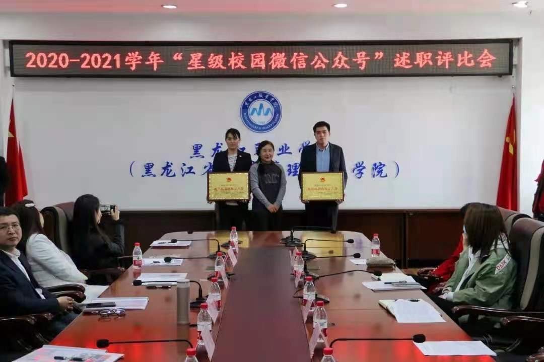 经过各学院述职,工商管理学院和电气工程学院两个学院分别荣获2020-2021学年“星级校园微信公众号”荣誉称号;工商管理学院团总支书记于德洋、电气工程学院团总支书记姜玲两名老师分别荣获“星级校园微信公众号优秀指导教师”荣誉称号;工商管理学院团总支副书记杨轶琪、电气工程学院团总支副书记李新鑫两名同学分别荣获“校园新媒体优秀运营个人”荣誉称号。与会领导向获奖单位和个人颁奖了荣誉证书。