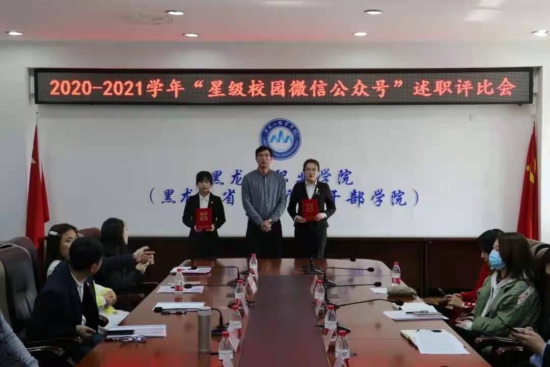 会上,九个二级学院官微公众号运营负责人从公众号的文化建设、队伍管理、制度建设、板块特色、数据分析、未来目标等方面用PPT作了述职汇报,充分展示了各二级学院“青春新媒体,龙职最强音”的精神风貌。