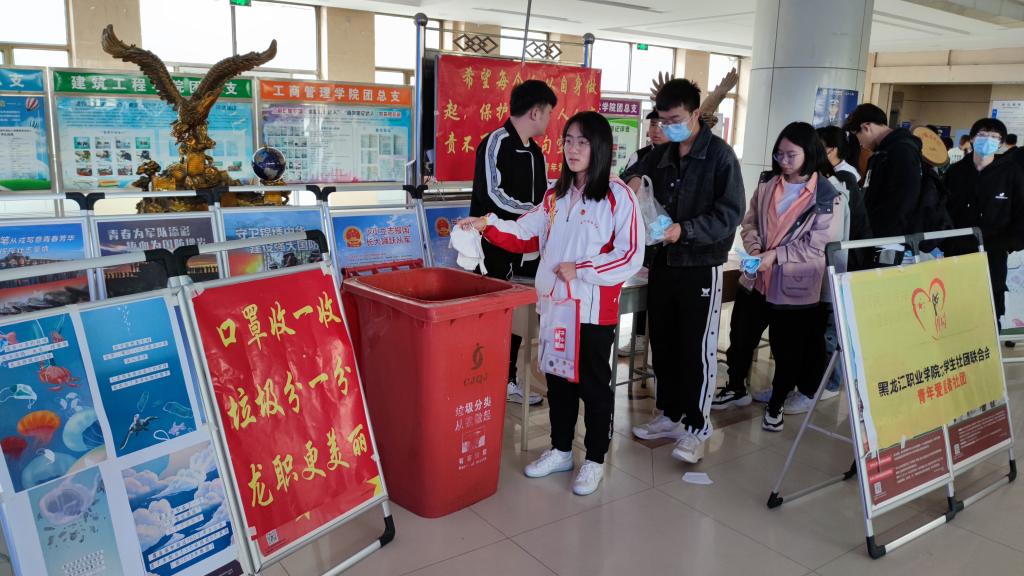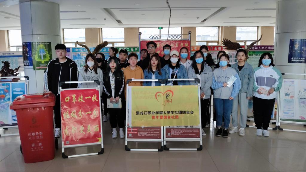 4月27日,青年爱国者社的学生们在思想政治教研部德育教研室教师的悉心指导下举行了“废弃口罩回收,构建健康龙职”的主题活动。以展板图画的方式介绍了废弃口罩对于自然界产生的危害,以及废弃垃圾对于生态环境的破坏。一幅幅生动图画的展示让学们了解到回收废弃口罩、进行垃圾分类的重要性。“你问我答”环节让学生加深了印象,充分意识到了垃圾对环境的破坏影响。随后,学生们把最近使用的废弃口罩投入专用的口罩回收垃圾箱。