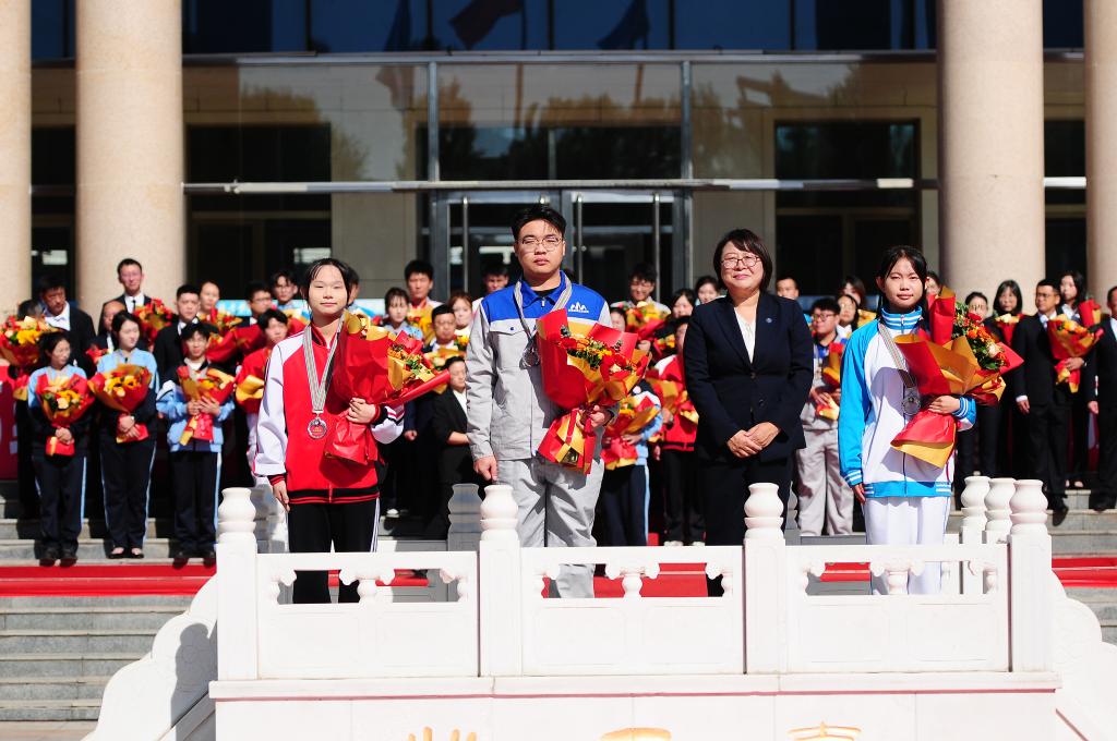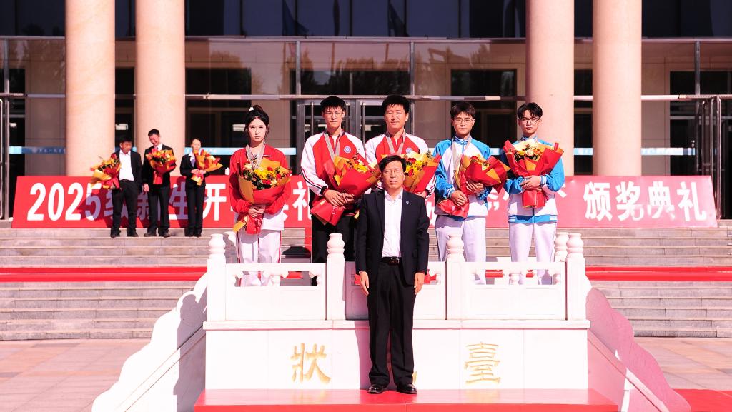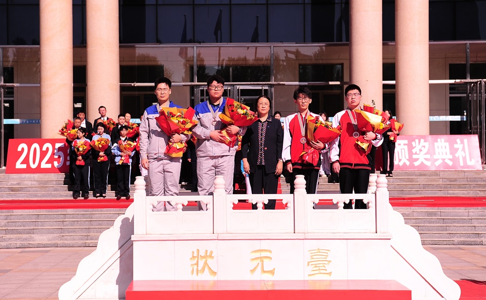 这是一场对卓越的礼赞,也是一次对青春的致敬。9月29日,必赢2025学年度“颁龙职奖·登状元台”活动隆重举行。获奖者依次走上红毯,登上状元台。校长王利文,党委副书记杨东辉,副校长吴艳秋、何志鹏,纪委书记陈玉平,副校长王广文,党委委员、组织部部长石明杰分别为国赛金奖、银奖、铜奖获奖代表颁奖,并合影留念。