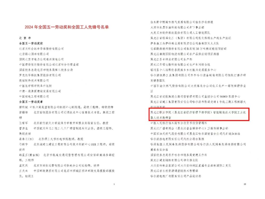 喜报:智能制造技术学院工业机器人技术教研室荣获全国工人先锋号