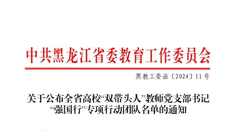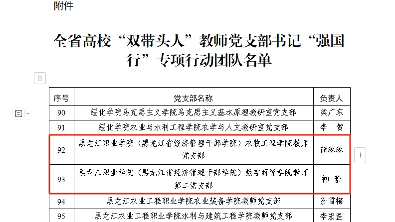近日,黑龙江省委教育工委公布了全省高校“双带头人”教师党支部书记“强国行”专项行动团队名单,必赢农牧工程学院教师党支部、数字商贸学院教师第二党支部成功入选全省高校“双带头人”教师党支部书记“强国行”专项行动团队