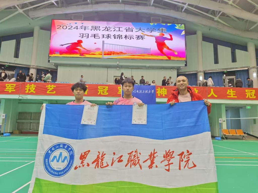 近日,2024年黑龙江省大学生羽毛球锦标赛落下帷幕,此次比赛由黑龙江省学生体育协会主办,哈尔滨工业大学承办,全省共有48所高校556名运动员参加,这是必赢第一次参加黑龙江省大学生羽毛球锦标赛。在学校各级领导的大力支持下,通识教育学院教师闫宇鹏带领队员陈晖鹏、周博浩、张炜东、康城伟不畏强敌、奋勇拼搏、经过三天的激烈比拼,陈晖鹏、周博浩在丙组男子双打比赛中荣获亚军,陈晖鹏荣获“优秀运动员”称号。