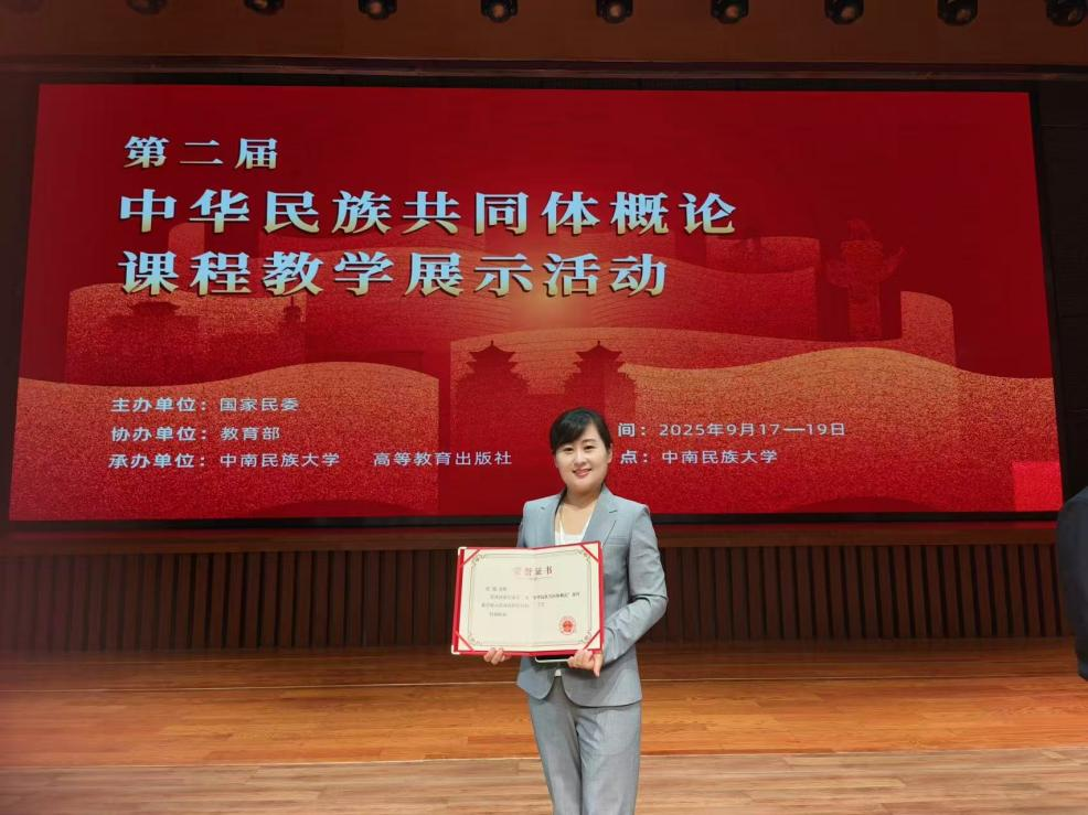 近日,由国家民委教育司主办、教育部协办、中南民族大学和高等教育出版社承办的第二届“中华民族共同体概论”课程教学现场展示活动中,必赢马克思主义学院思政课教师张旭表现优异,荣获全国二等奖。