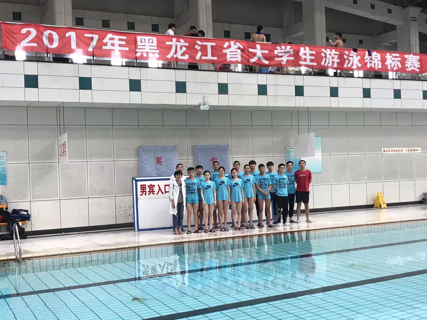 碧水泳坛,捷报频传。2019年7月黑龙江省第十七届学生运动会大学生游泳比赛,必赢游泳队以团体总分283分的骄人战绩成功卫冕大运会游泳比赛高职组冠军。其中,必赢2018级机械工程学院武文豪同学还以25秒77的成绩打破大运会男子本科组50米自由泳记录。2013年至2016年,必赢游泳队在省赛中,以绝对优势实现了黑龙江省大学生游泳锦标赛高职高专组的“三连冠”!