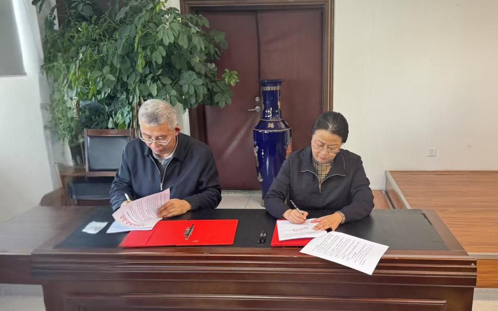 ▲王利文与副校长王广文签订《437ccm必赢国际官方网站安全工作责任状》