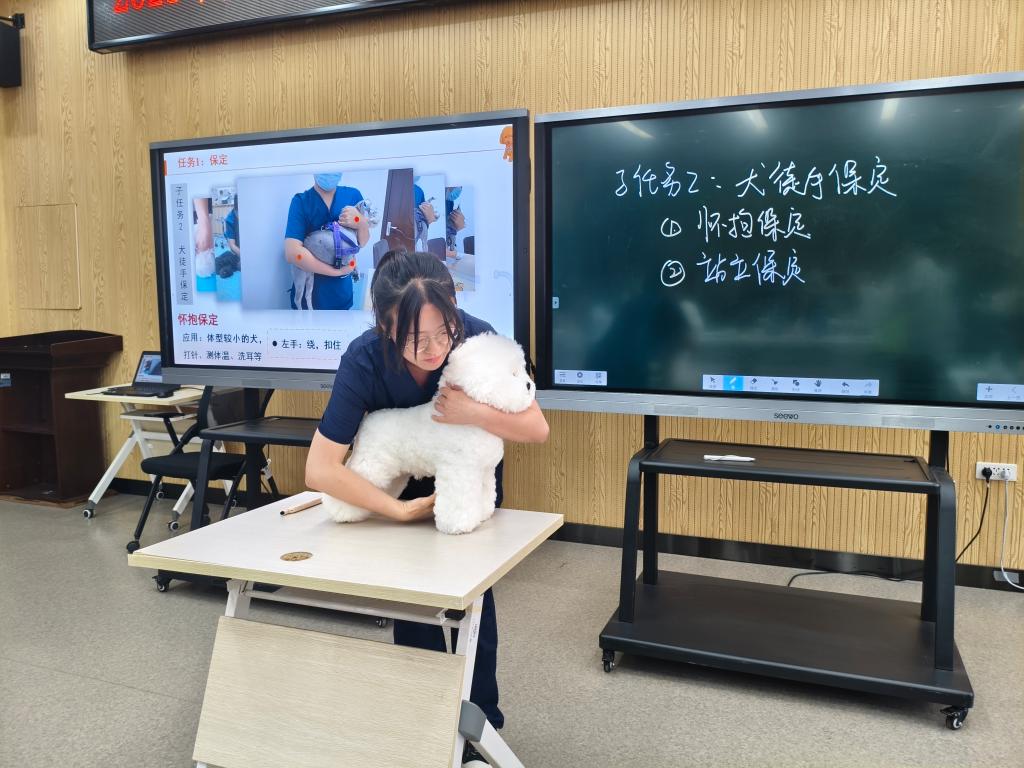 动物外科手术课程团队教师胡静进行课堂实操展示