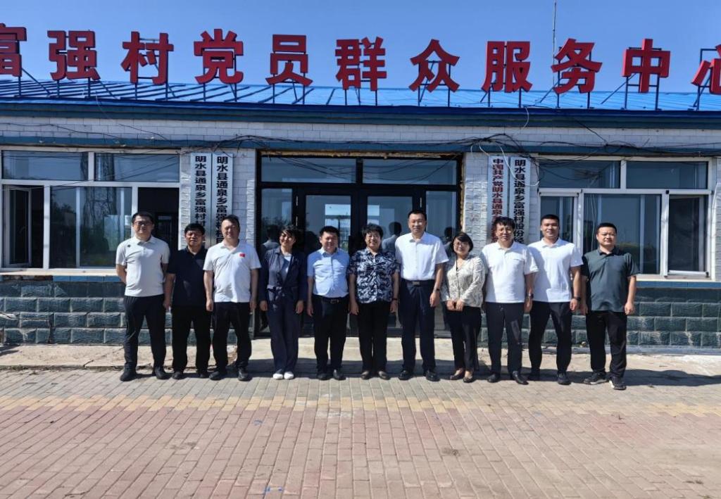 为深入贯彻落实乡村振兴战略部署,进一步巩固脱贫攻坚成果与乡村振兴有效衔接,7月2日,学校党委书记崔治春率队赴明水县通泉乡富强村调研驻村帮扶工作,看望慰问学校驻村工作队。明水县委书记马福,县委常委、组织部部长李朝阳,通泉乡领导及富强村村干部参加调研座谈会。