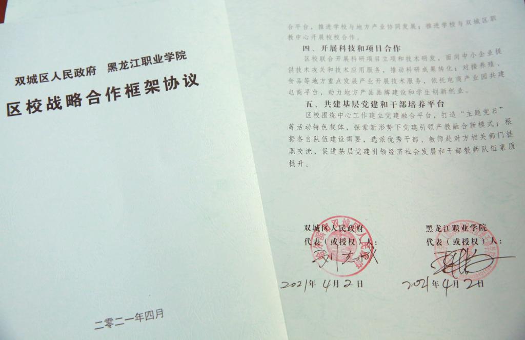 4月26日,随着哈尔滨市双城区人民政府区长刘志成和437ccm必赢国际官方网站校长王利文分别在《区校战略合作框架协议》上落笔签字,标志着学校与属地政府全方位、多层次、宽领域战略合作的大幕已正式拉开。