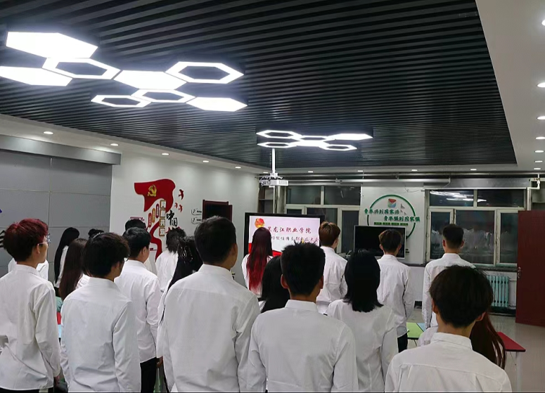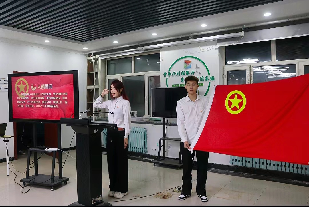 在主持人张成鑫的带领下,全体团员起立,进行入团宣誓,重温入团誓言、牢记使命。