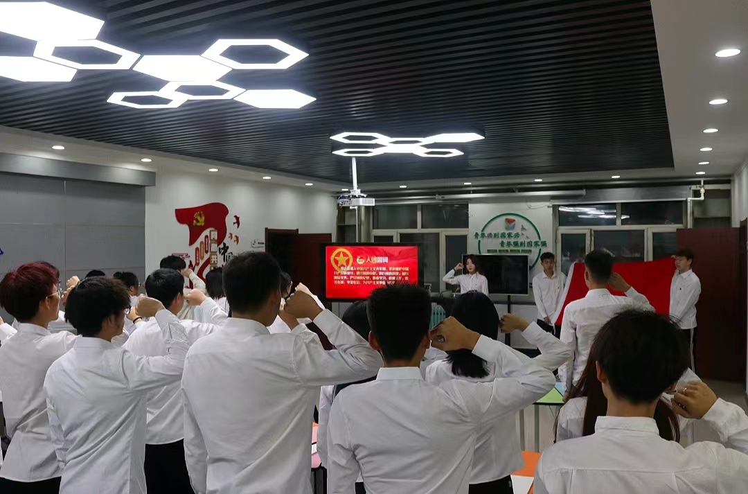 在主持人的带领下,全体团员起立,进行入团宣誓,重温入团仪式。