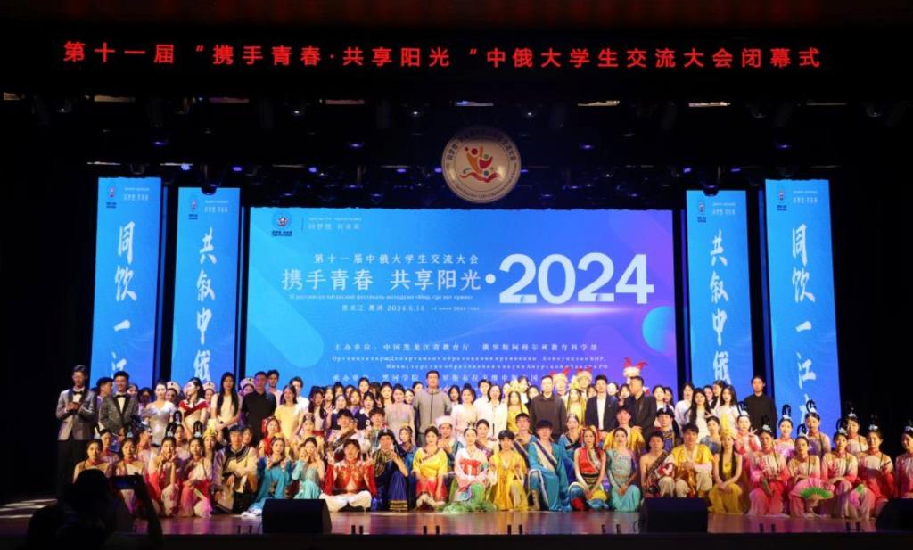 本次交流大会闭幕式在中国黑河学院音乐厅召开,闭幕式上演唱了原创主题曲《同梦想·共未来》,歌曲生动呈现了中俄文化交融互鉴的美好图景,中俄青年共享音乐魅力,尽展青春活力。至此,本次中俄大学生交流大会圆满结束。