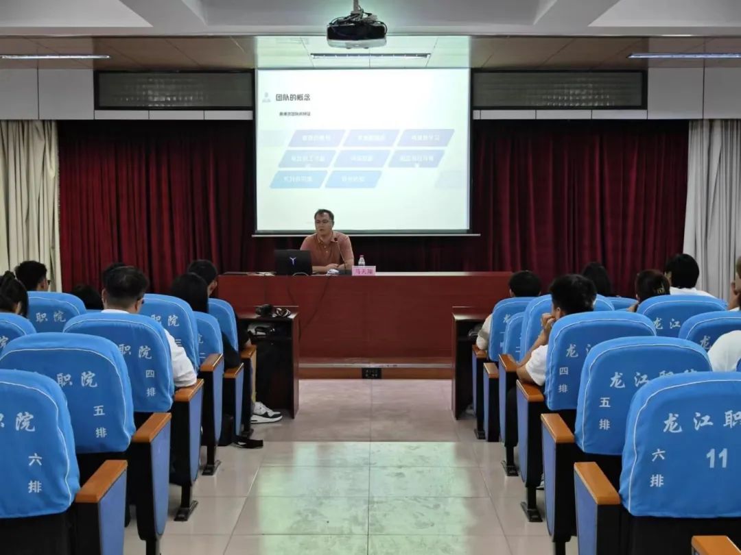 在为期9天的培训中,主讲人梁立、马莉、马天翔、常通分别以《学生组织工作人员心理解压与自我调试》、《团队的力量》、《用语言打开自己,用沟通拓展交际》、《以新媒体之力让龙职更美丽》、《做有担当的新时代青年》等为主题进行了培训,期间开展了《维和防暴队》观影活动和主题研讨、培训心得交流分享活动,在运动场开展了学员素质拓展训练。