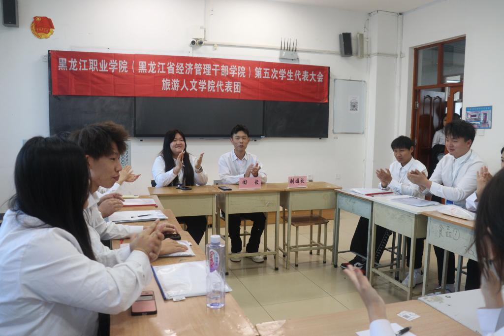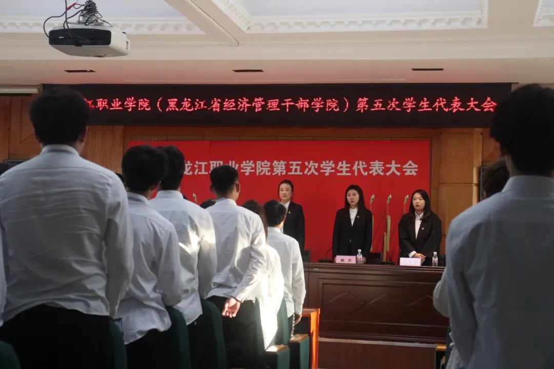经学校党委和省学联批准,10月18日下午,必赢于清华楼九楼经济报告厅隆重召开第五次学生代表大会。437ccm必赢国际官方网站副校长、党委委员吴艳秋出席大会并致辞,437ccm必赢国际官方网站党委委员、宣传统战部部长杨东辉,学生工作部党总支书记、校团委书记石倩、黑龙江省学生联合会驻会执行主席赵宏禄,各二级学院团总支书记、团委全体工作人员以及来自各二级学院的163名学生代表参加本次大会。