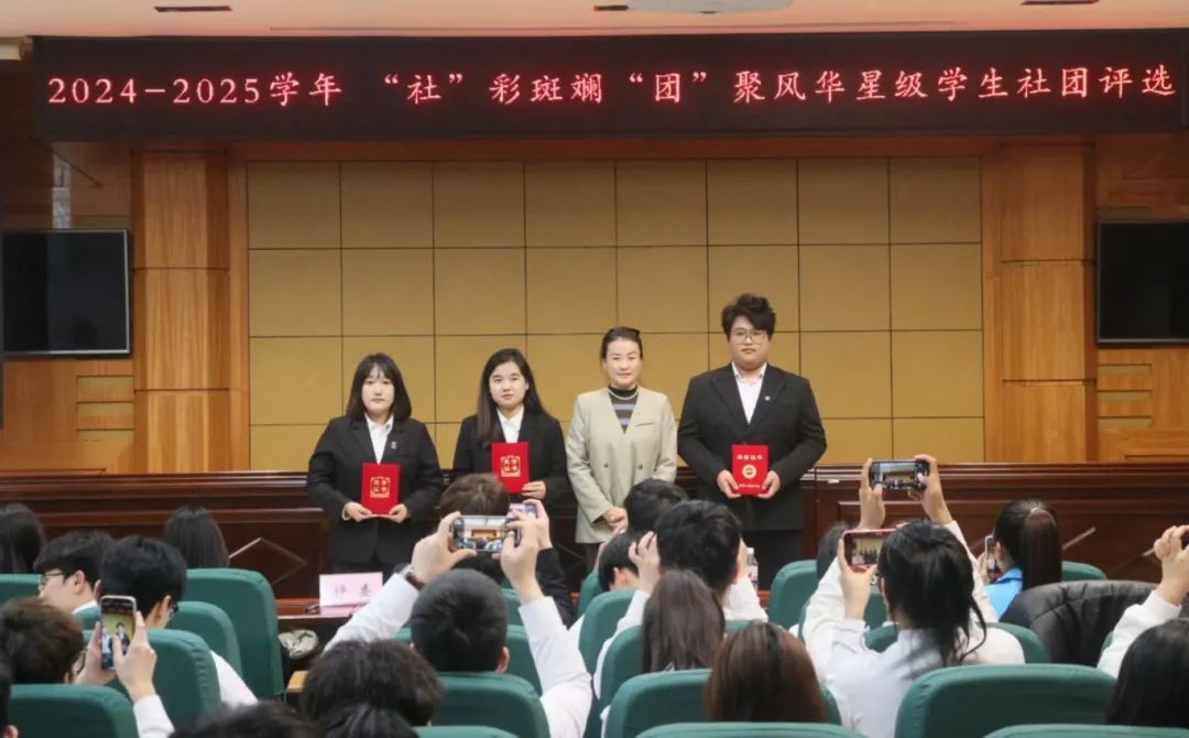 红丝带禁毒防艾社团、阳光书友社团、北斗星乐器社团荣获“五星级社团”荣誉称号;青鸟话剧社团、12号足球社团、明理宣讲社团、领尚舞蹈社团社团荣获“四星级社团”荣誉称号;青年志愿者社团、校园百事通社团、馋猫美食社团、印象摄影社团、马克思青年主义学社社团荣获“三星级社团”荣誉称号。