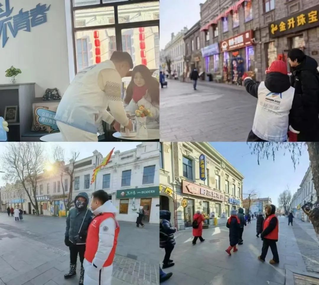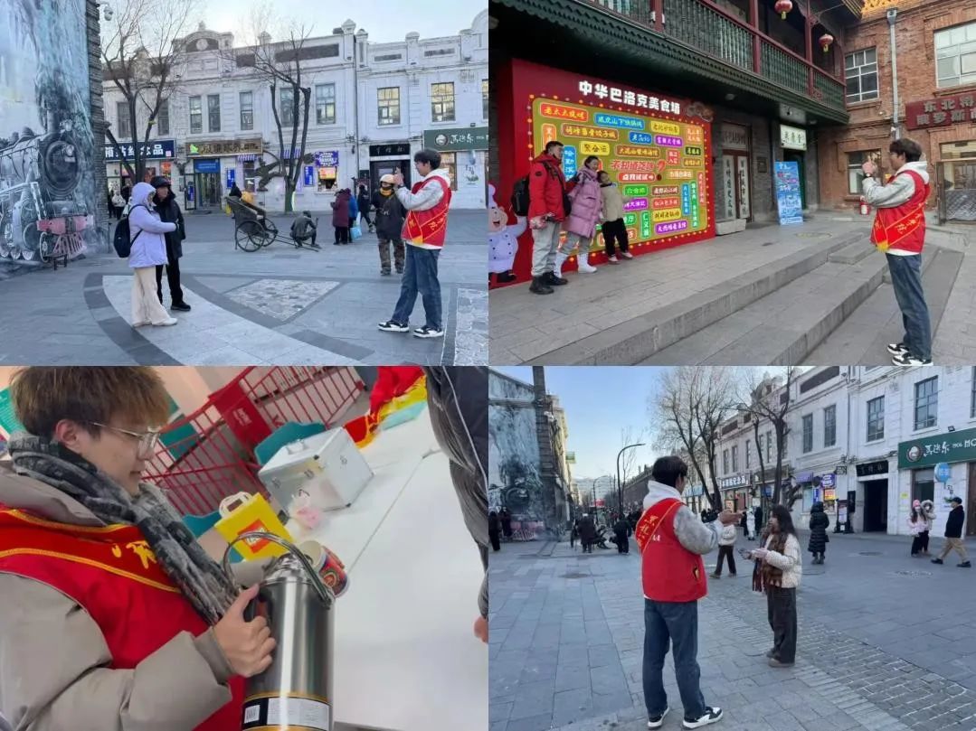 此次志愿服务活动是必赢校团委响应团市委号召,组织必赢青年志愿者们在道外中华巴洛克街区和青年之家开展的志愿活动,期间志愿者们身着统一的志愿服装活跃在街区的各个角落,为中华巴洛克街区增添了一抹亮丽的色彩。志愿者们不仅向外地游客提供提供免费热水、暖贴等贴心保暖物品。同时还作为向导带领游客们在中华巴洛克街区进行导览、讲解街区历史文化,主动帮助游客拍摄游客照。此外,志愿者们还兼顾街面环境清洁与现场秩序维护。他们手持垃圾袋和夹子,仔细捡拾地面垃圾,同时积极劝导不文明行为,让街区环境更加整洁、秩序井然。