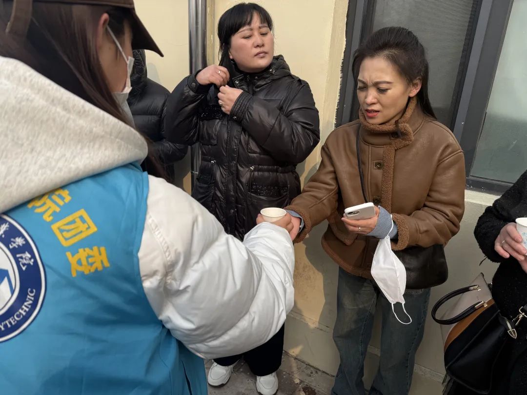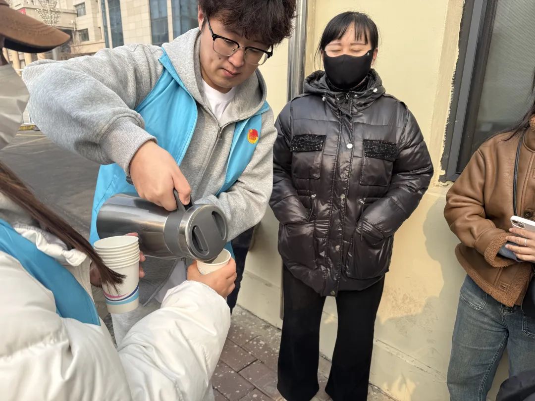 校团委特设立志愿服务站,为考生指引方向、答疑解惑;为家长提供休息区,提供热水、暖贴等保暖物品。志愿者们用高度负责的责任心和热情周到的服务,确保了志愿活动的顺利进行,赢得了考生和家长的一致赞誉。