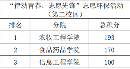为深入贯彻落实习近平总书记关于志愿服务精神的重要论述,结合“国家健康三年行动”计划,引导学生“走下网络”、“走出寝室”、“走向操场”,校团委开展以“绿动青春,志愿先锋”为主题的志愿环保活动月。4月16日全民健身大学生趣味体育竞赛系列活动已落下帷幕,现将比赛结果公示如下: