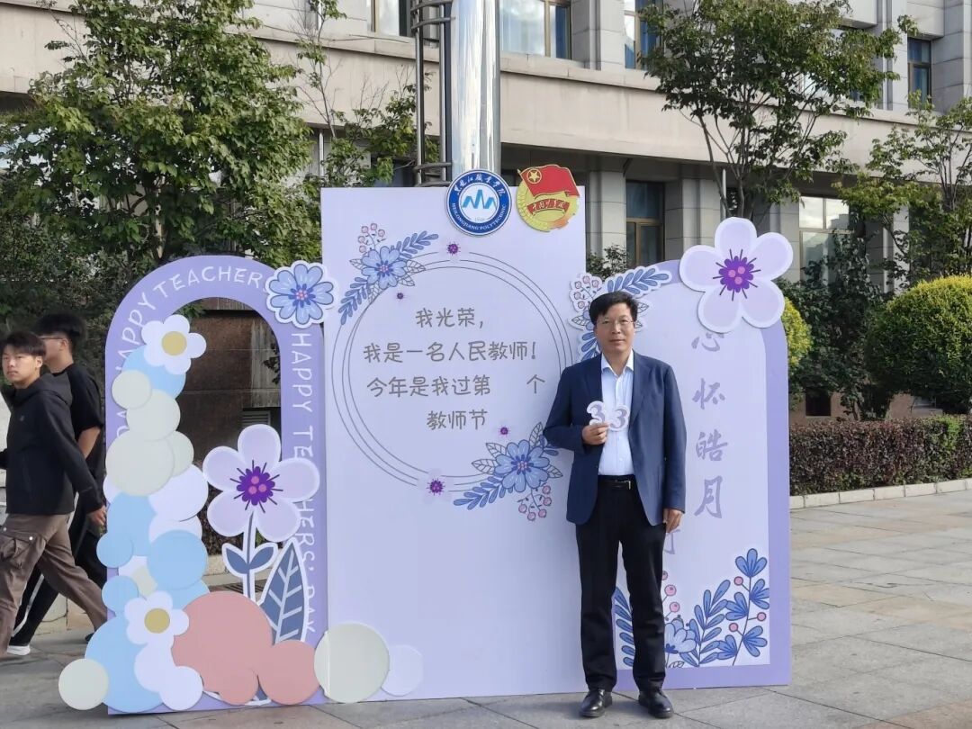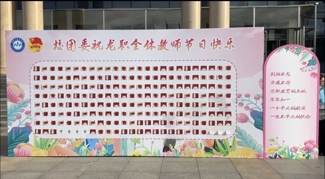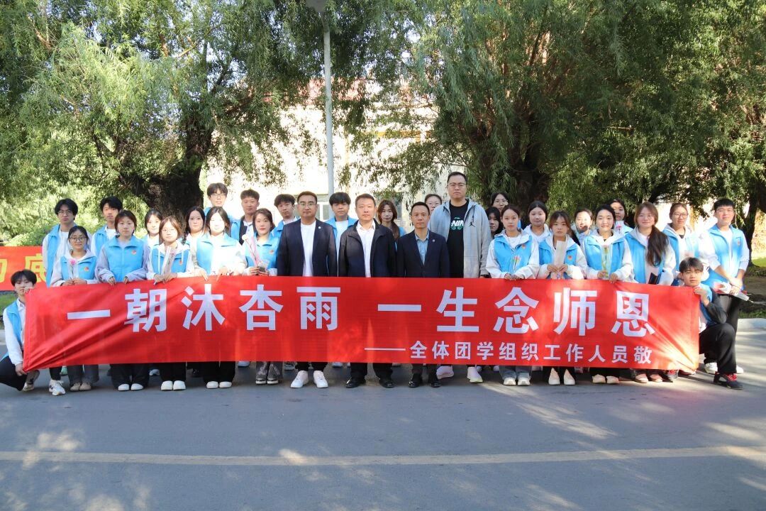 九月晨光和煦,师恩洒满校园。在第41个教师节到来之际,校团委精心策划了一系列主题活动,通过庄重的文化礼仪与温馨的互动环节,向全体教职工致以最诚挚的节日祝福,让尊师重教的氛围洋溢在校园的每个角落。