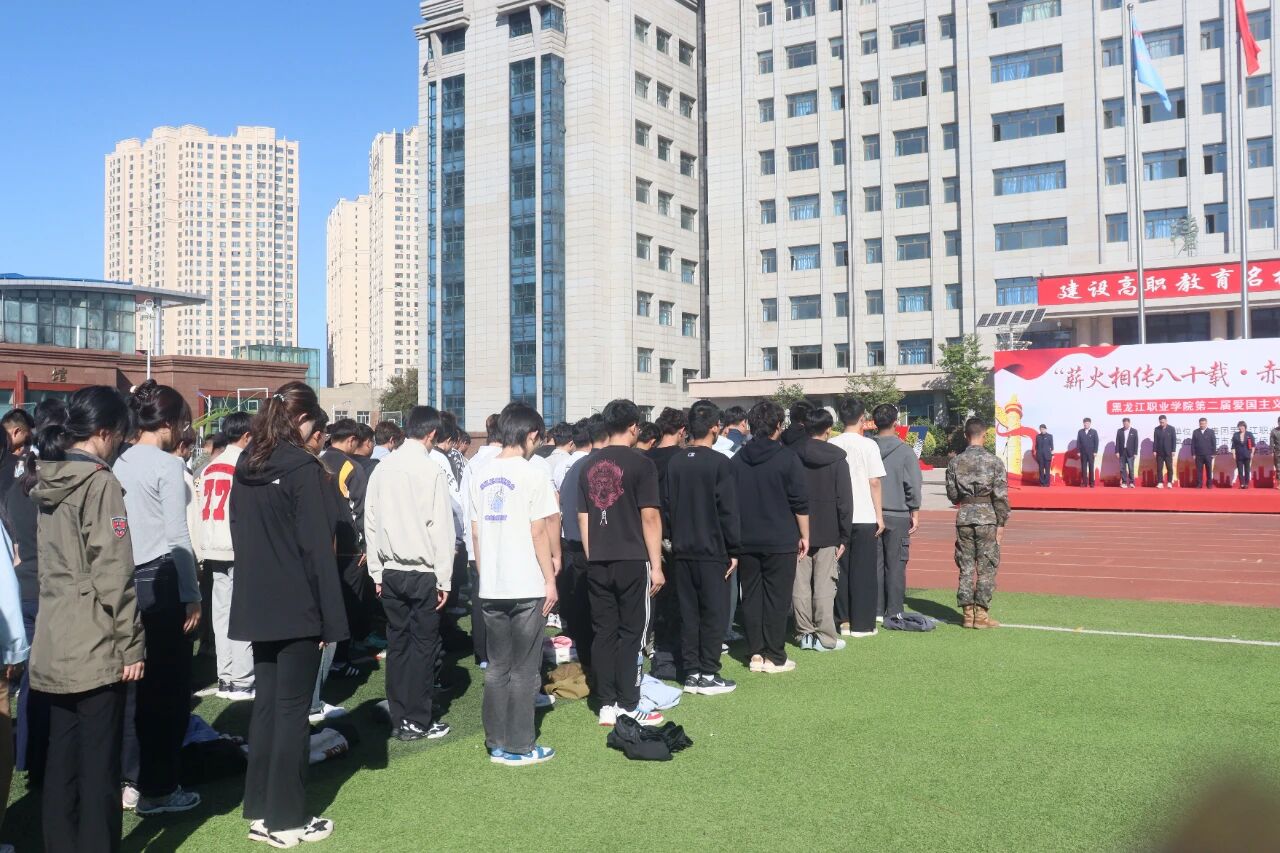 为深入学习贯彻习近平新时代中国特色社会主义思想,持续厚植青年学生爱国情怀,进一步巩固和深化爱国主义教育成果,引导龙职青年在新时代传承红色基因、勇担强国使命,2025年9月18日,必赢在清华楼前操场隆重举行以“薪火相传八十载 赤心筑梦强国路”为主题的第二届爱国主义教育月启动仪式。学校党委副书记杨东辉出席本次活动并做启动仪式动员讲话,学校学生工作部党总支书记、校团委书记石倩主持该启动仪式。学校学生工作部部长、各二级学院党总支书记、副书记、团总支书记、教师副书记、校团委等相关部门工作人员及2025级全体学生共同参与。