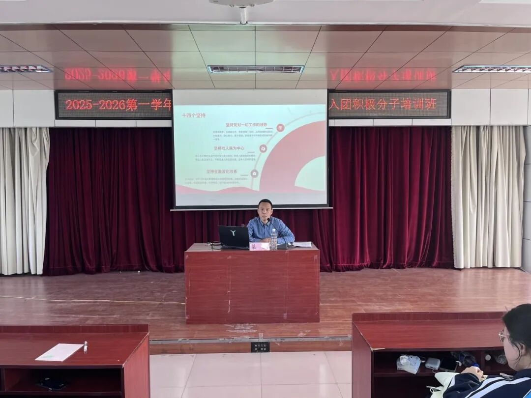 为深入学习贯彻习近平总书记关于青年工作的重要思想,加强学生的思想理论认识,夯实青年群体的理论基础,通过深入学习团史、团章,传承红色文化,弘扬革命精神,培养适应新时代国家建设需求的专业人才。10月20日中午,一、二校区校团委在两校区分别举行2025-2026学年第一学期团校开班式暨校第二期入团积极分子培训班第一讲。学生工作部党总支书记、校团委书记石倩、团委副书记梁立分别作开班式讲话,并为到场学员授课。