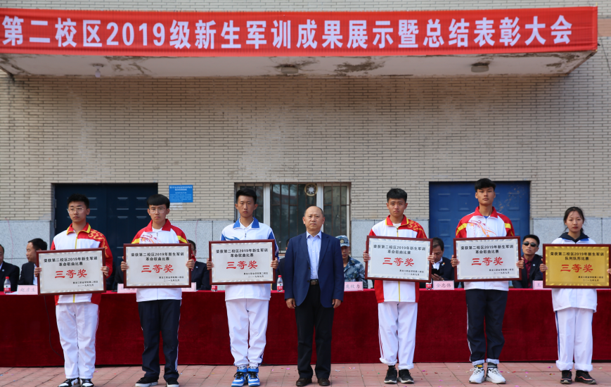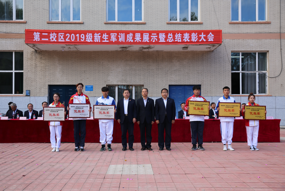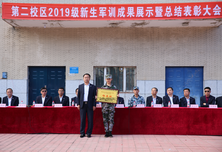 9月19日14时,第二校区2019级新生军训成果展示暨总结表彰大会隆重举行。学校党委委员、组织部部长钟敏强,中国人民解放军95935部队参谋长庞攸力,437ccm必赢国际官方网站副校长孙福忠及各二级学院院长、书记、各职能部门负责人、全体学工人员共同参加大会。大会由团委副书记于满昌主持。