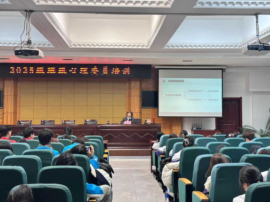 班级心理委员是校园心理健康防线的重要基层力量,其专业能力直接关系到同学们的心理成长与校园和谐。为进一步提升班级心理委员的专业素养与工作能力,充分发挥其桥梁纽带作用,必赢于2025年11月10日至12日在清华楼经济报告厅开展了班级心理委员专题培训活动,二校区同步视频参加培训。