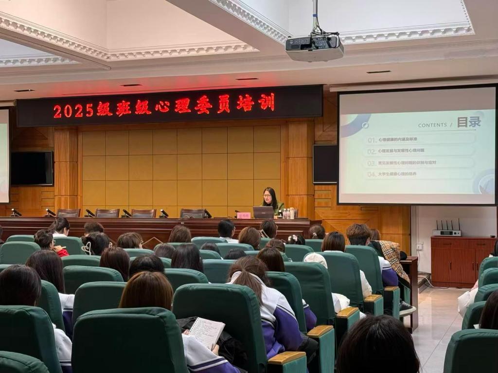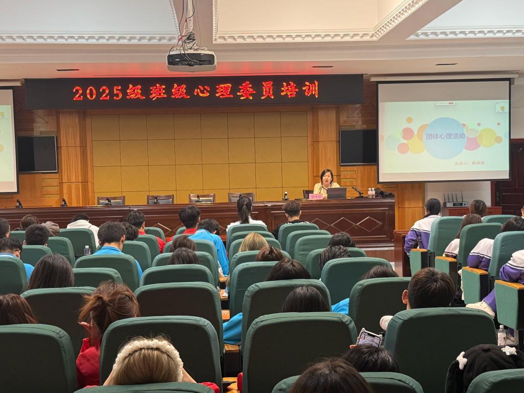 培训活动内容丰富、安排紧凑。隋长羽老师主持开班仪式,明确相关培训要求,还围绕“心理委员工作概述”展开讲解,让心理委员们对自身工作有了初步且系统的认知。崔秀明老师带来“心理健康的标准”“常见发展性问题及识别”的专题讲座,帮助心理委员们掌握心理健康判断标尺与常见发展性心理问题的识别方法;孟妍老师就“异常心理的识别及心理危机干预”进行授课,强化了心理委员对异常心理的辨别能力和危机干预意识;蒙雪老师聚焦“人际沟通及交往”,传授有效沟通技巧,助力心理委员更好地协调班级人际关系;蔡培培老师开展“团体心理活动及示例”的分享,为心理委员组织班级心理活动提供了实用参考。