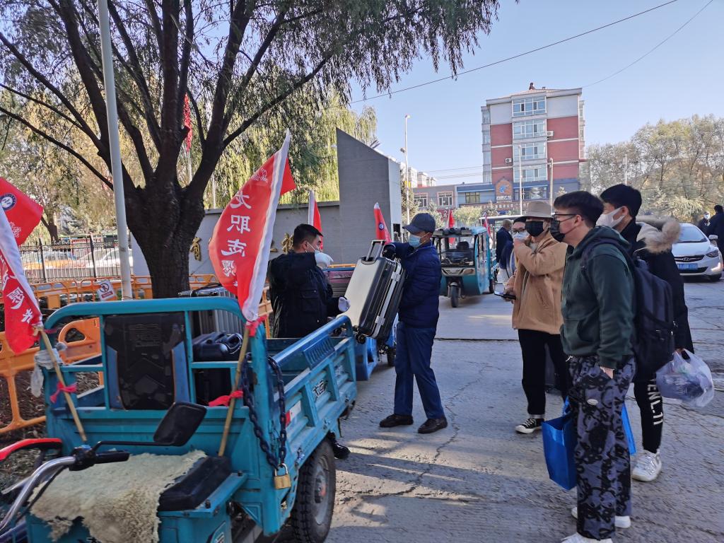 这次“暖心行动”需要多部电动三轮车做为运送学生行李的工具。保卫处和后勤服务中心主动请缨,发动本部门职工义务为志愿活动无偿提供电动三轮车五部,完全满足了服务学生的需要。农牧工程学院和食品药品学院志愿者分别负责一号学生公寓楼和四号公寓楼学生行李搬运工作。因楼层较高,行李较重,一趟下来志愿者身上就大汗淋漓,秋风一吹直打冷颤,但志愿者心中有团火,稍做休整就又投入到下一趟搬运。在核酸检测现场,信息工程学院动漫1901班刘泊豪,动漫1902班李博、郭品贝、袁一伦等四名学生正在帮医护人员搬运检测设备。医护人员向他们表达了谢意,几位同学说:“我们返校时,老师不辞辛苦帮我们搬运行李,让我们体会到了回家的感觉。老师的行动也感染了我们,帮你们做点力所能及的事情也是应该,不用客气。”