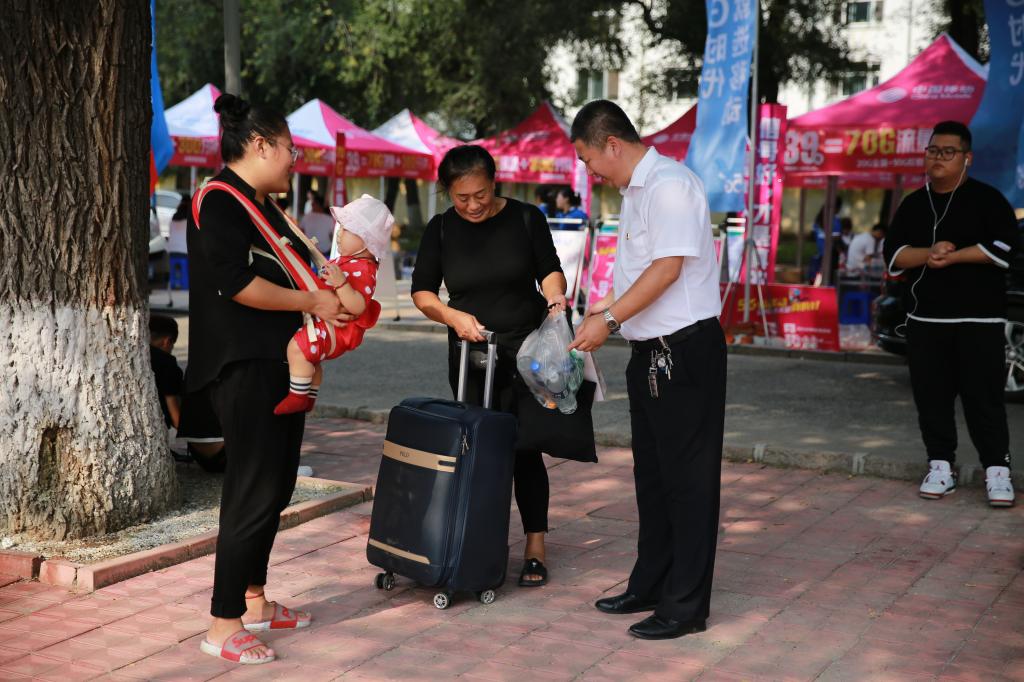 尽管时令已转至初秋,但今天的气温却依然停留在28℃。在报到的人潮中,有一位抱着婴儿新生家长格外引人注目,综合办公室党支部书记张晓东在迎新现场发现后,主动迎了上去,详细了解这位家长的情况。原来这位抱着婴儿的家长是农牧工程学院宠物临床1904班新生闫姊莹的姐姐,由于姐妹情深,不放心妹妹一个人出远门,就同妈妈一起从吉林农安陪妹妹来校报到,怀中的婴儿仅9个月。张晓东得知这一情况后,马上把她们迎到值班室临时休息,并安排专人全程陪同她们办理相关手续,从报到登记到交纳学费,从办理饭卡到整理床铺,直到帮助闫姊莹的妈妈和姐姐在校外找到合适的宾馆入住,党员车队的同志才返回学校。