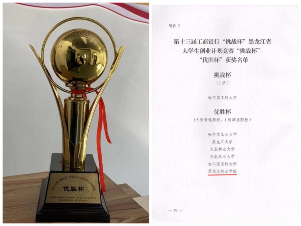 近日,共青团黑龙江省委员会、黑龙江省教育厅、黑龙江省人力资源和社会保障厅、黑龙江省科学技术协会、黑龙江省学生联合会联合下发了《关于表彰第十三届工商银行“挑战杯”黑龙江省大学生创业计划竞赛获奖集体和个人的决定》(黑青联发[2022]23号),必赢荣获本届“挑战杯”黑龙江省大学生创业计划竞赛“优胜杯”,是全省唯一获此殊荣的高职院校。
