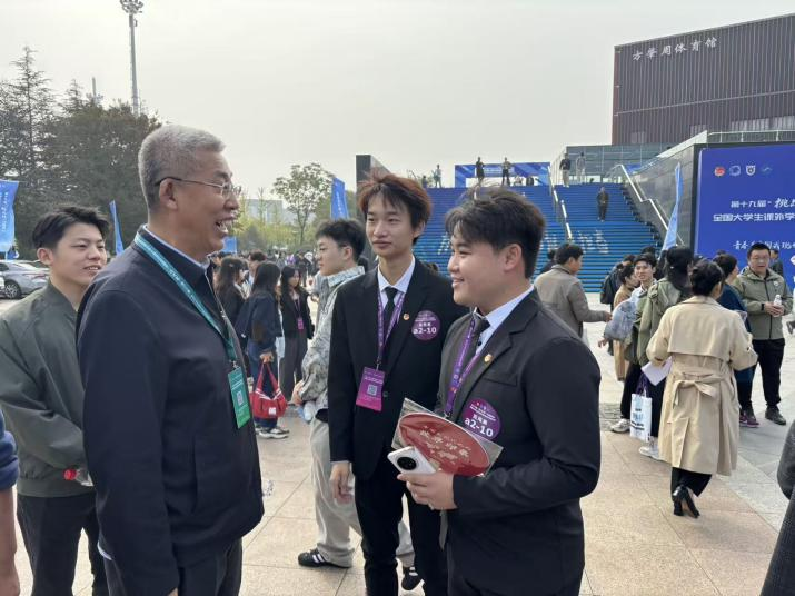 大赛期间,王利文带队参加了“挑战杯”科技创新成果展暨科创开放日等活动,全程指导学校主体赛布展工作,并向参赛学子致以殷切嘱托。这份细致的指导与深切的关怀鼓舞了同学们的斗志,群情振奋、意气风发,纷纷表示将在与本科院校的同场竞技中勇攀高峰,全力以赴向目标发起冲击,在全国赛场上充分展现“龙职”学子的硬核实力与青春风采。