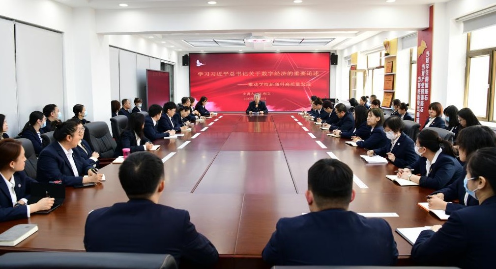 按照学习贯彻习近平新时代中国特色社会主义思想主题教育工作安排,5月10日,学校党委副书记、校长王利文以《学习习近平总书记关于数字经济的重要论述 推动学校新商科高质量发展》为题,为工商管理学院师生讲授了一堂生动的主题党课。