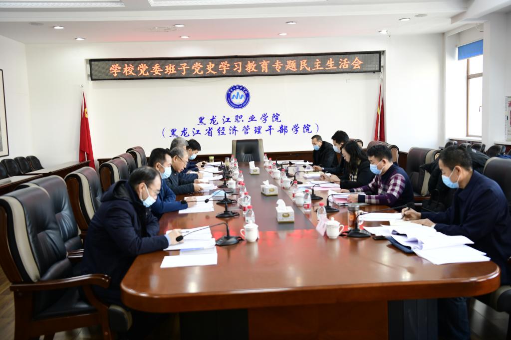 1月14 日,学校党委召开领导班子党史学习教育专题民主生活会。省纪委监委驻省教育厅纪检监察组四级调研员黎乐乐,高校党史学习教育第一巡回指导组副组长吴春丽,高校党史学习教育第一巡回指导组成员张欲锐到会指导。学校党委书记赵继会,党委副书记、校长王利文,党委副书记周家郁,党委委员、副校长郑福贵,党委委员、副校长王明海,党委委员、副校长吴艳秋,纪委书记李伟,党委委员、组织部部长钟敏强参加会议。会议由赵继会主持。