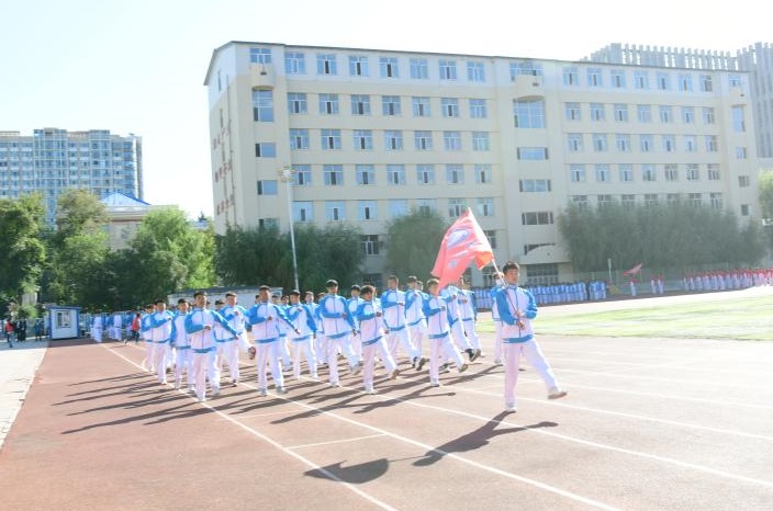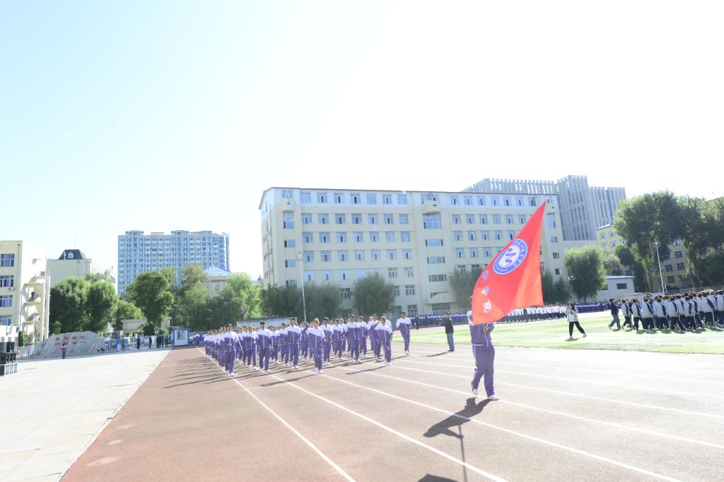 8时30分,升旗仪式正式开始,在庄严的国歌声中,五星红旗缓缓升起,拉开开学典礼序幕。首先,进行的是军训成果展示,分列式上各军训方队同学以整齐的步伐、嘹亮的口号、饱满的热情、昂扬的斗志、坚定的信念展示了为期三周的军训成果,为“大学第一课”交出一份精彩的青春答卷。军训方队代表队进行了擒敌拳、格斗基础、战术基础、内务整理等军训科目展示,在校大学生退役士兵展示了摔擒、小队战术科目。